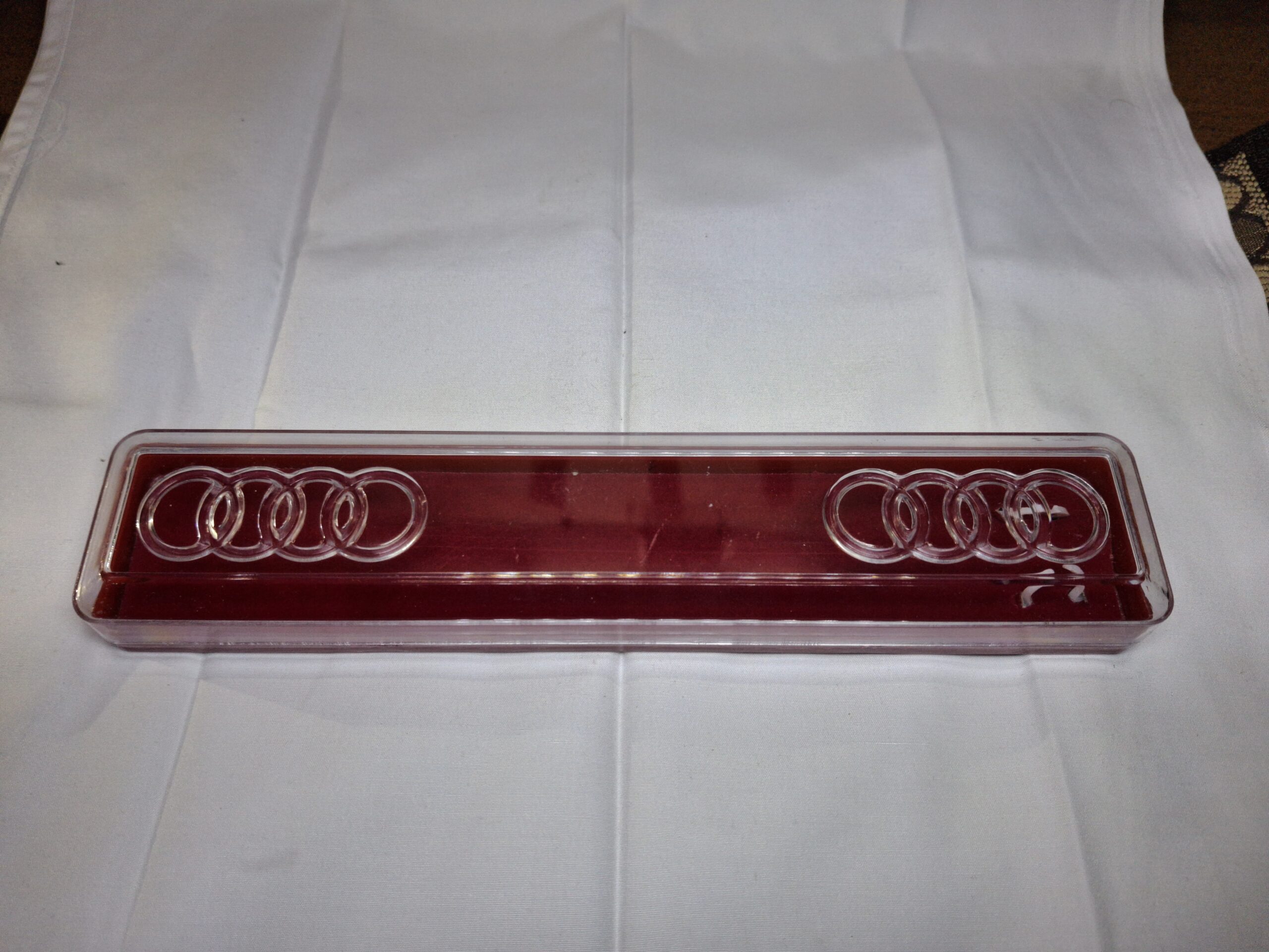 Audi-Style Logo Chain Box – Transparent Plastic, Red Satin Interior