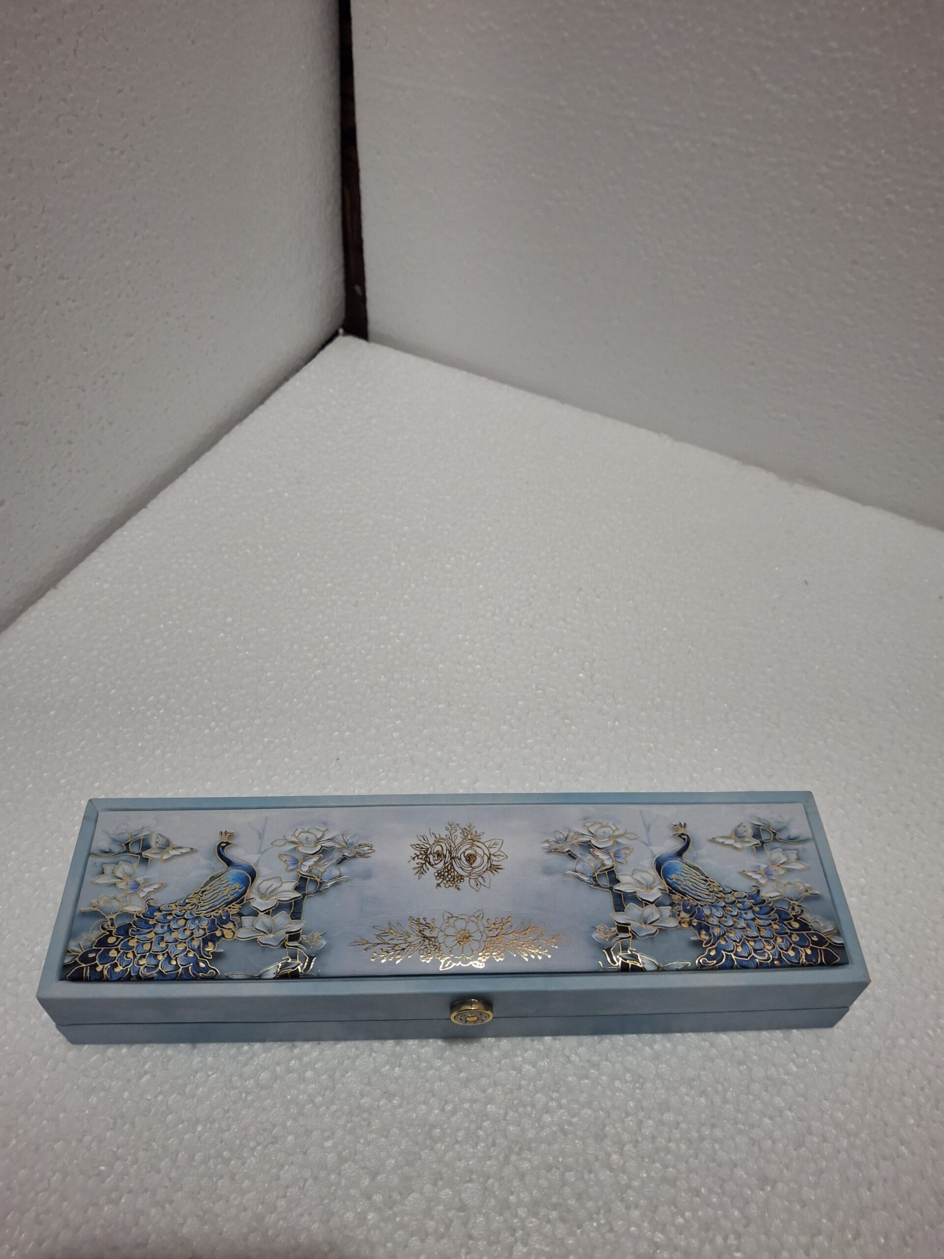 If you are searching for the perfect way to present your precious chains and necklaces, this Sky Blue Peacock Design Chain Box is the ultimate choice. Designed with sophistication and style, this luxurious chain jewelry box blends beauty, durability, and functionality in one elegant form. Whether it’s a gold chain, a silver necklace, or a diamond pendant, this box enhances the brilliance and value of your jewelry with unmatched refinement.