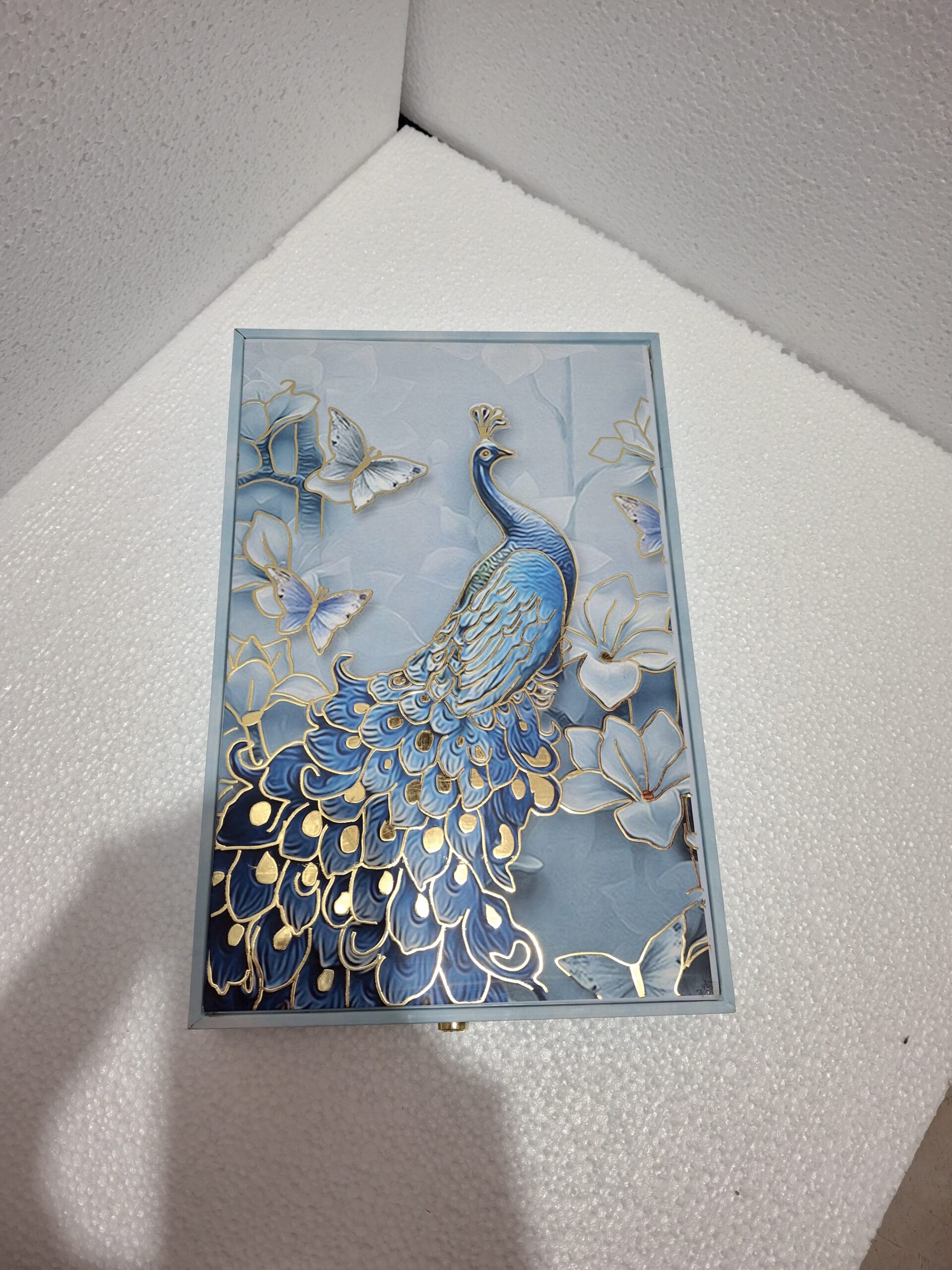 This isn’t just another plastic jewellery box—it’s a work of art. From the elegant exterior and intricate peacock design to the plush interior and radiant LED light, every feature adds to its premium character. Perfect for weddings, anniversaries, proposals, and exhibitions, it’s a customised jewellery box designed to make your jewelry stand out.