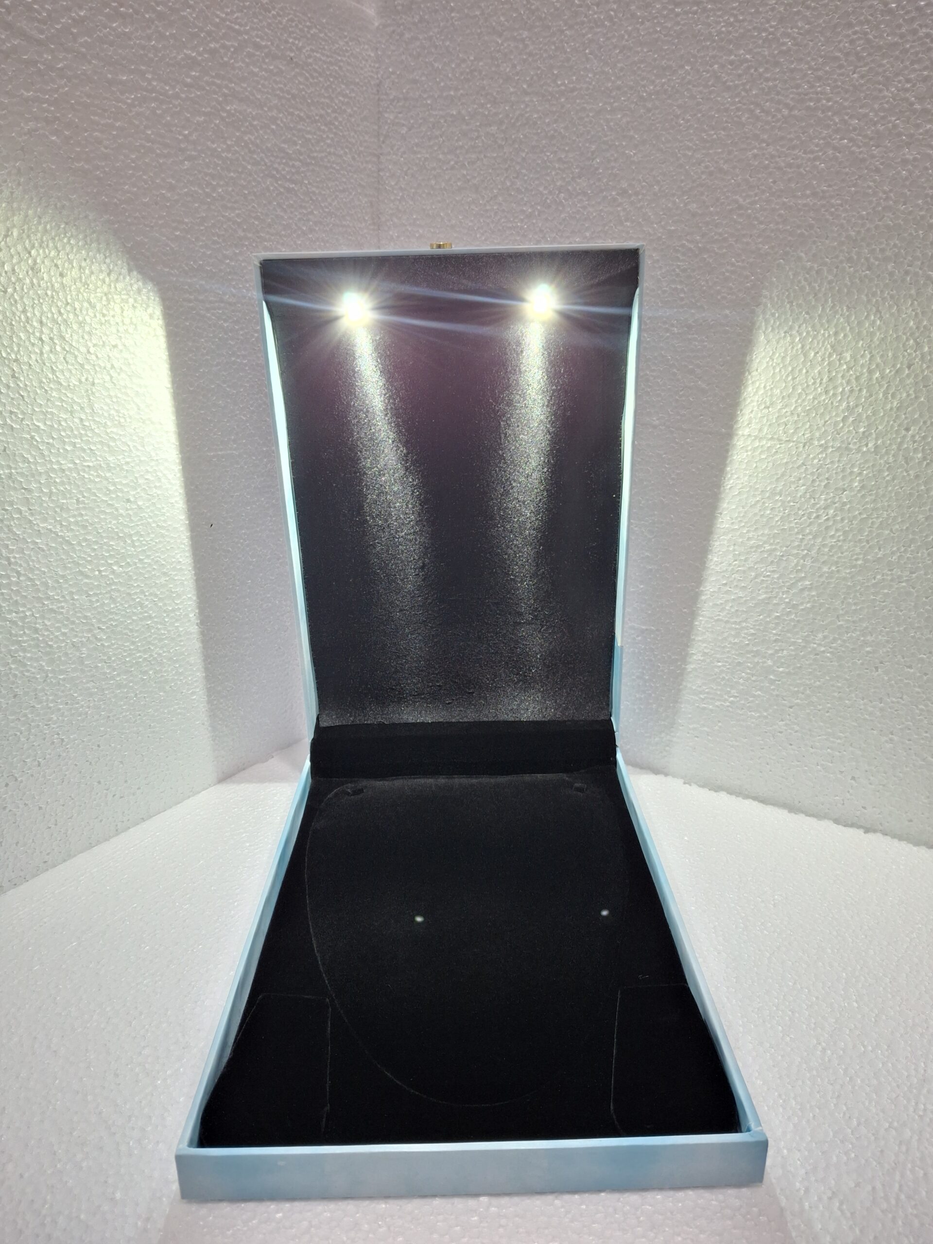 Discover the perfect way to display your cherished long necklace with this premium jewellery box for necklace set. More than just a storage case, this stunning necklace box is designed to elevate the presentation of your jewelry, making it ideal for gifting, retail display, or personal collection. Every element—from the serene sky-blue exterior to the soft LED illumination—has been carefully designed to turn every unboxing into a luxurious experience.