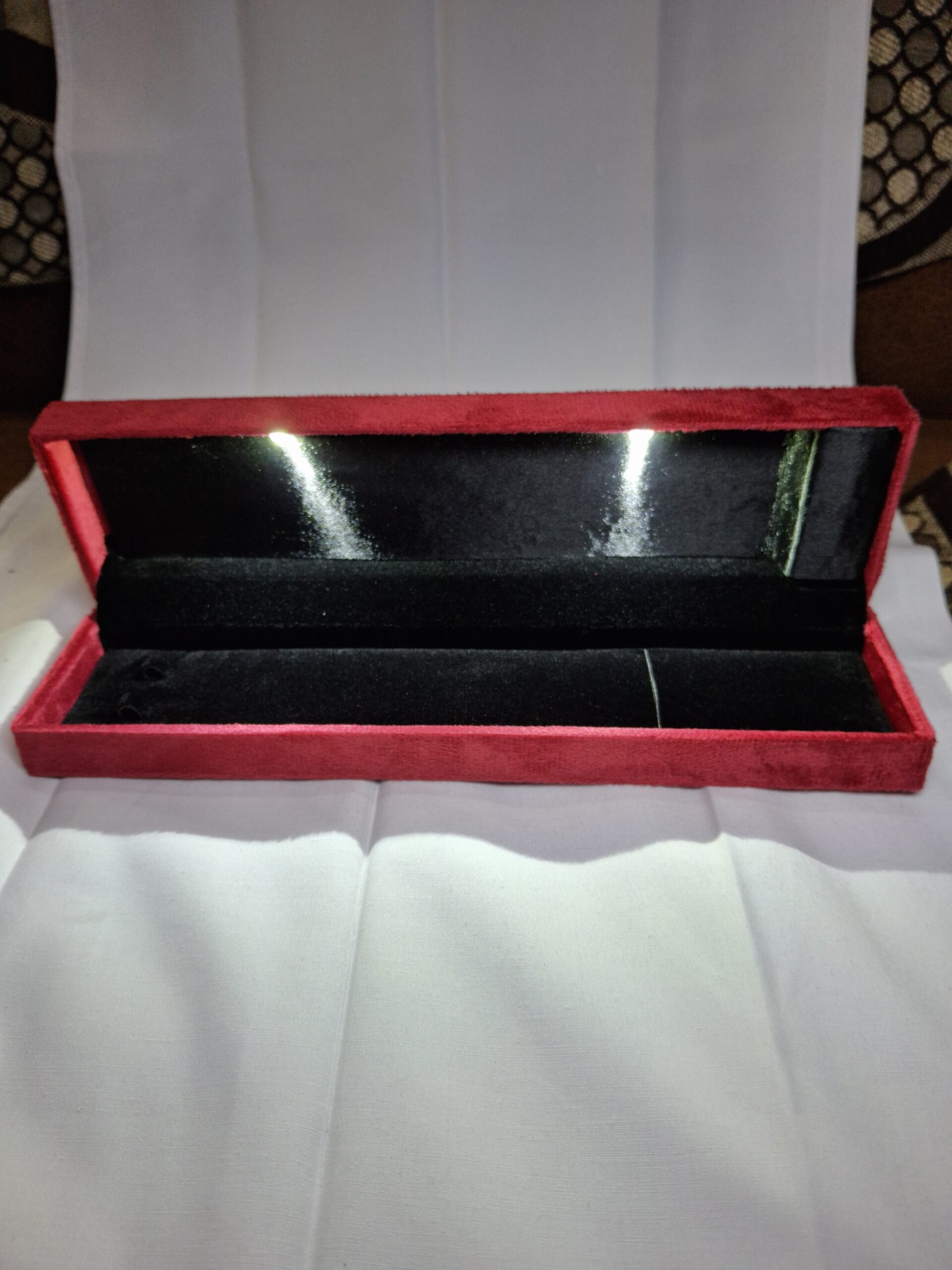 Inside, the box features a black satin lining that not only provides a luxurious look but also cushions your jewellery safely. The built-in LED light fitting illuminates your jewellery when opened, enhancing the sparkle of chains, rings, or bangles. This special feature makes every moment—whether gifting or displaying—extraordinary.