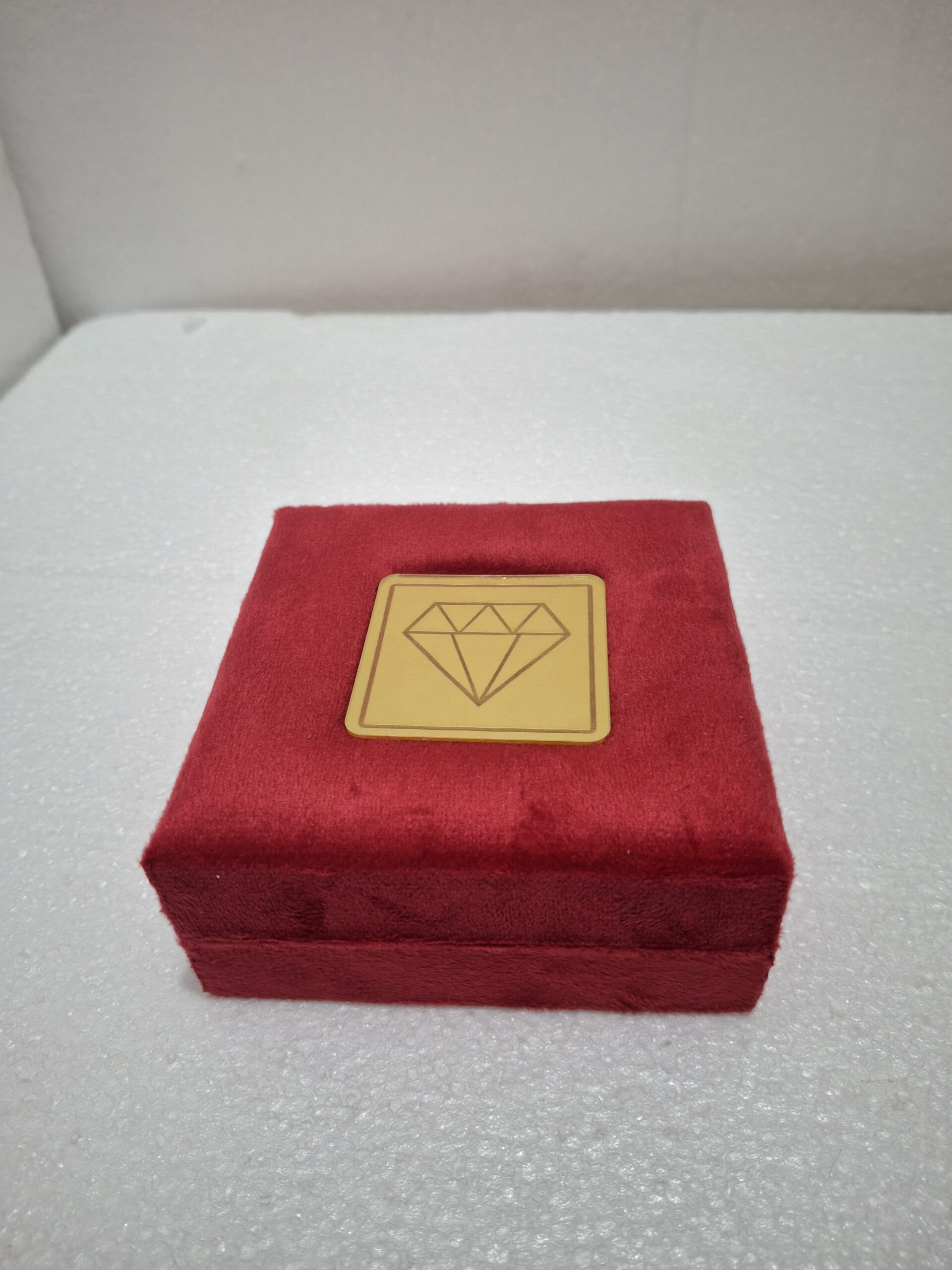 Wrapped in rich, high-quality tomato red suede, the bangles box has a soft, velvety texture that radiates elegance. The vibrant red colour represents love and passion, while a golden diamond-stamped plate at the top adds a royal touch. This thoughtful detailing transforms a simple box for bangles into a statement of luxury. Durable yet stylish, it’s ideal for boutiques, jewellery counters, and traditional gifting occasions.